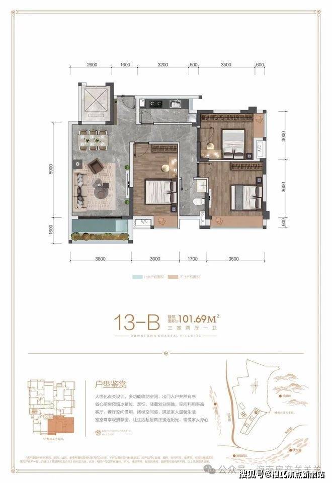 【B户型】建面约101.69㎡三室二厅一卫