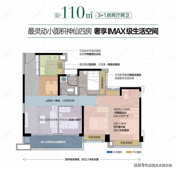 110平全能四房与124m王牌四房,超越标准的进阶之作,空间功能 步到位。多开间朝南,LDK客餐厨一体化,高拓展、超高实用率,约6.4米奢尺阳台,目之所及皆是赏心悦日【110㎡全能四房,生活一步到位】