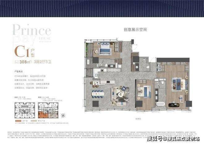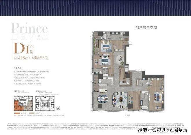 全户型纵享环幕视野。项目打造主力建面约215-415㎡纯粹品质公寓共191席,顶层为建面约1270㎡公寓产品。