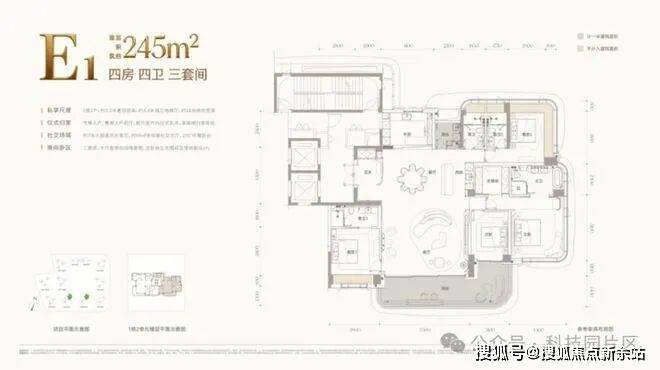 E户型 约245㎡四房四卫