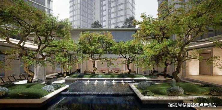 酒店式阳光车库+林下悬浮度假泳池+迎宾庭院 +浮岛庭院双庭院,