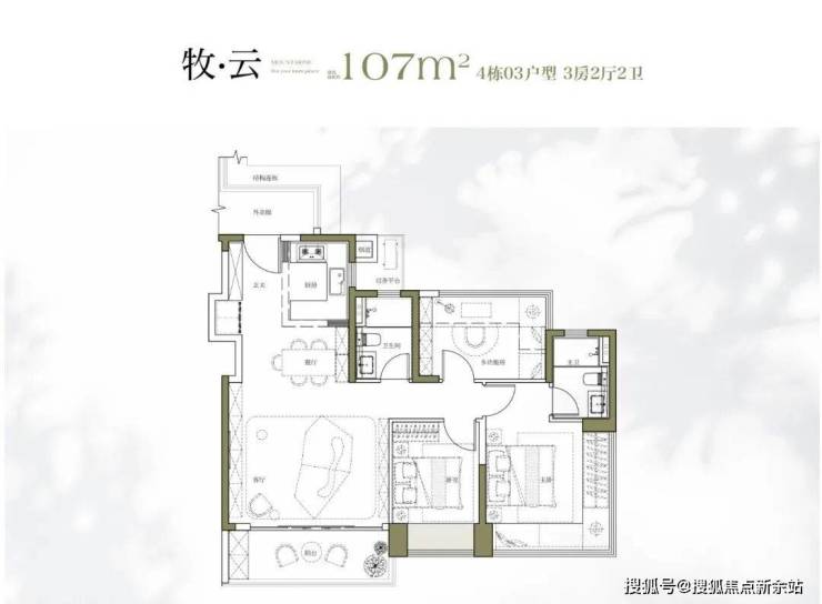 107㎡ · 3 房 2 厅 2 卫