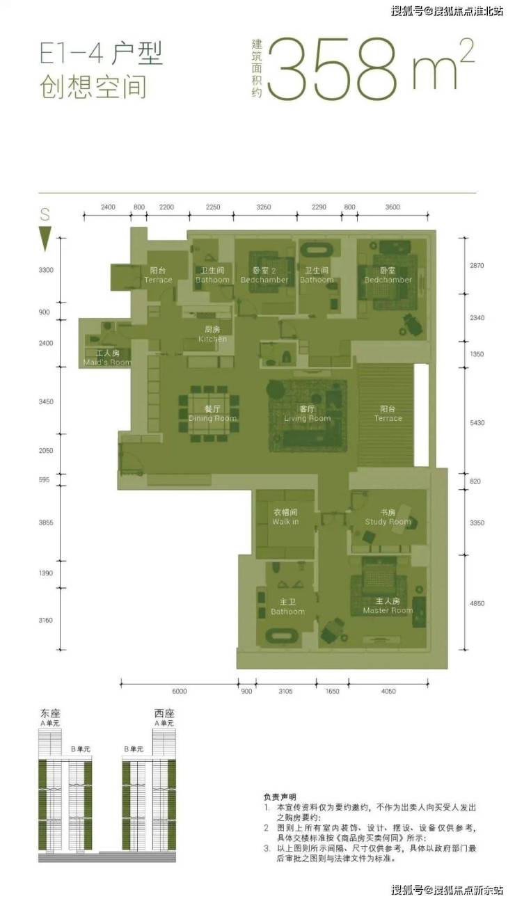 【层高】主力户型复式双层,标准层高4.5米,双层通高9米
