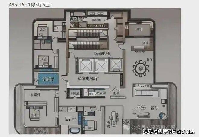 豪宅基本配置,专梯入户,该户型属于传统竖厅结构,动静区分明,客厅与厨房同处一条直线,卧室则处于另一块静区,由于该栋单层3户,做不到其他栋两户或单户的客厅180度多面景观设计,只能牺牲小户型,估计这一栋定价也是最低的,上车门槛估计2800起步。