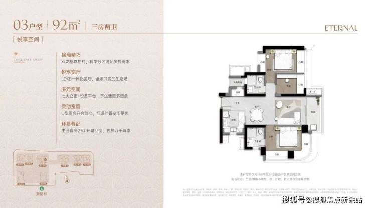 建面约92㎡三房悦奢臻品