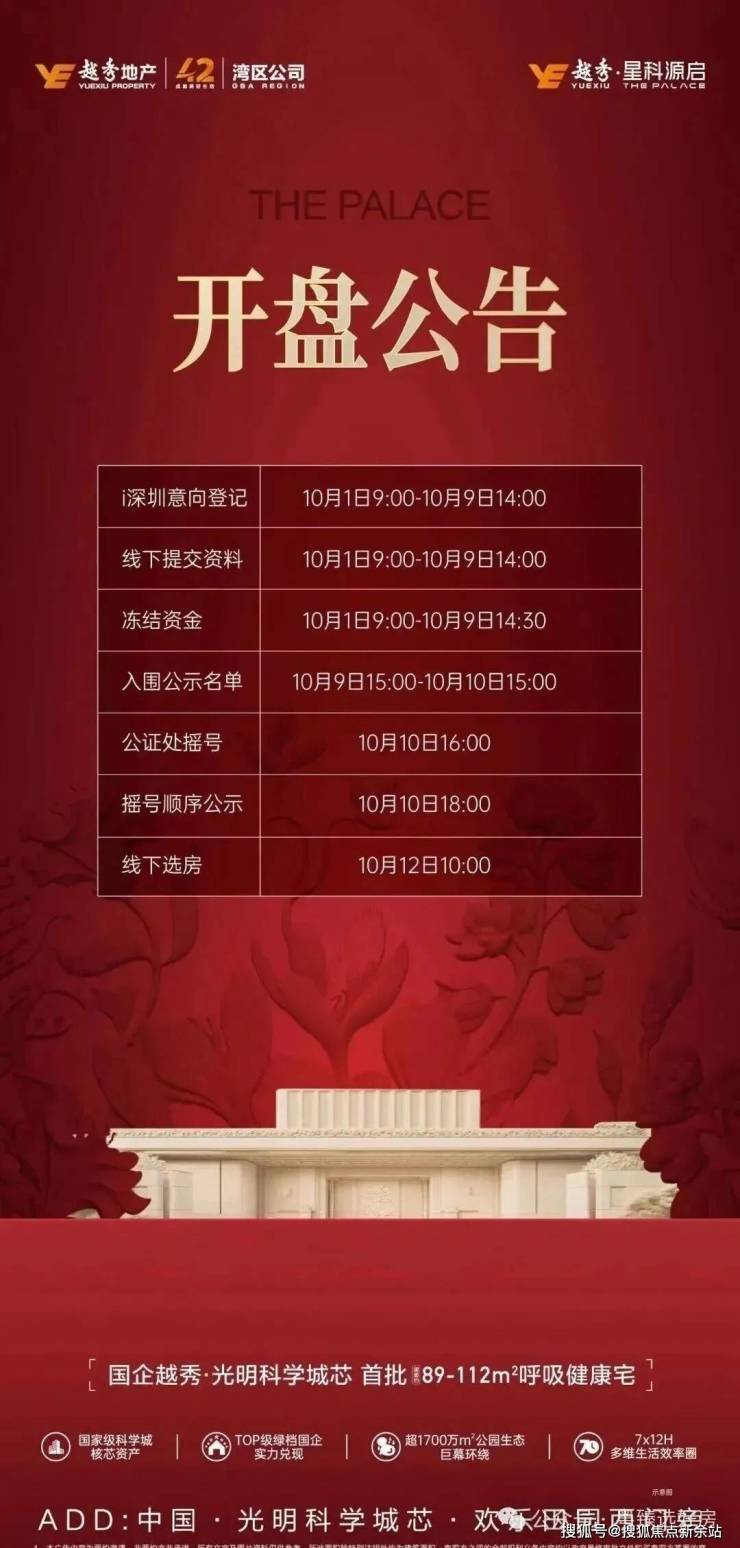 光明中心区,越秀星汇珑府改名越秀星科源启,已取证,于国庆(10月1日)开样板房+冻资,项目原计划10月12日开盘选房,现推迟到10月18日,本次首推1栋1单元153套房源,89㎡三房两卫仅300万起,112㎡四房两卫430万起。