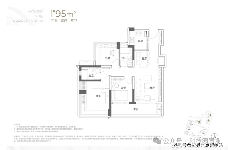 建面约95㎡3房2卫