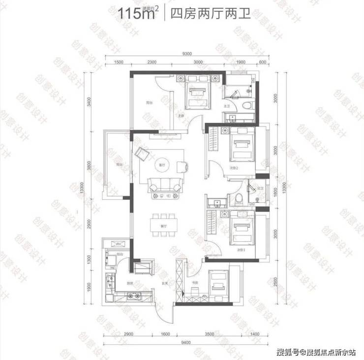 建面约115㎡四房产品,空间宽绰,满足多样化需求