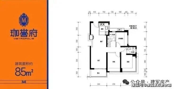 | 约85㎡(横厅)三房两厅两卫【总价约415-455万】