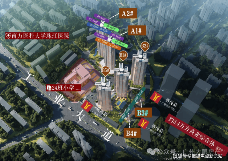 紧邻工业大道主干道,向北接昌岗中路、内环路,向南5min接驳新滘西路、环城高速,交通路网发达,20min+速达广州核心区。