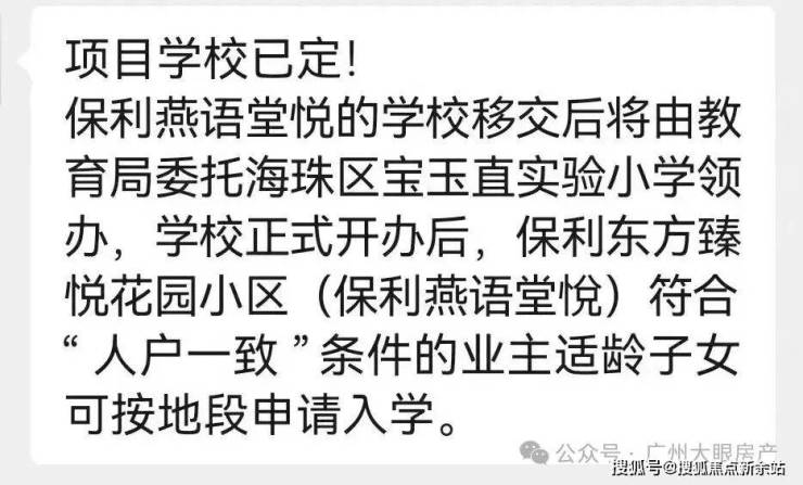 就在前不久,海珠公布最新招生政策,明确符合“人户一致”条件的保利燕语堂悦业主适龄子女可按地段申请该校。