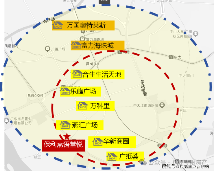 保利燕语堂悦位于氛围成熟的海珠西老城区,周边不缺乏大型的商业,比如有综合体方圆333、乐峰广场、广百等等,可以说是海珠最成熟的商业都在项目周边了,烟火气十足,不愁吃喝玩乐
