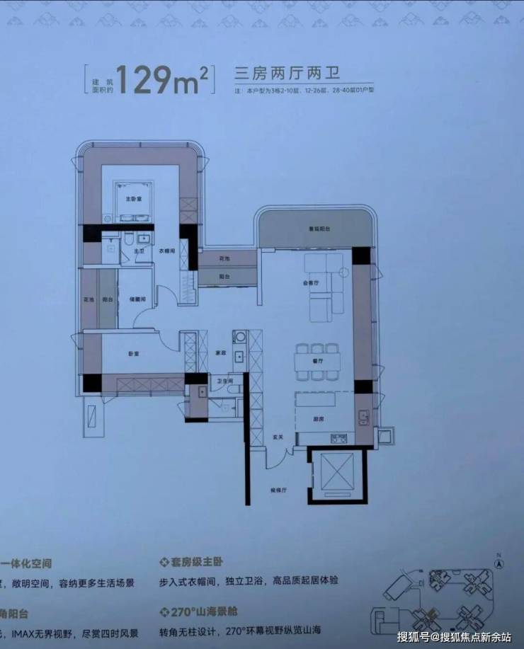 总占地面积约1.58万㎡,总建筑面积约14.1万㎡,计容建筑面积约10.44万㎡,容积率6.54,绿化率40.01%,共由4栋31-45层高住宅组成,4梯5户(低区)/4梯4户(高区)、约125㎡以上专梯专户