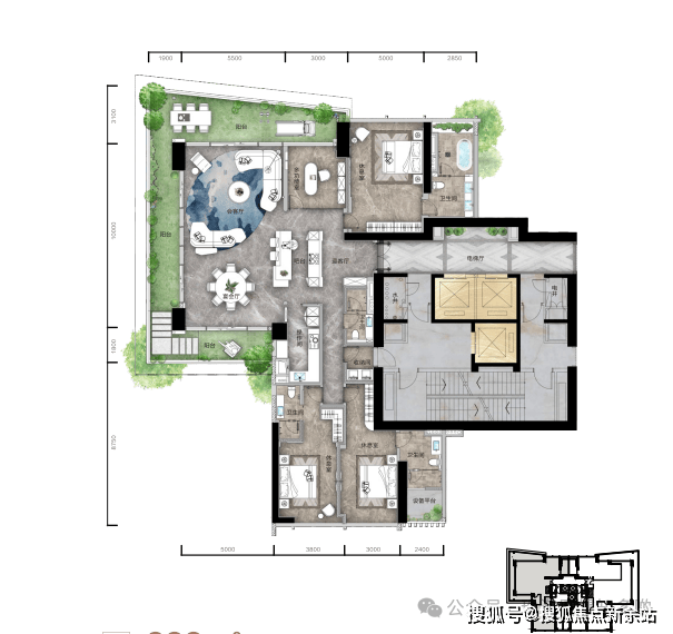 ● 三面开间、三面通风采光,3.6米层高,大平面、大尺度、大空间,120方超大会客厅