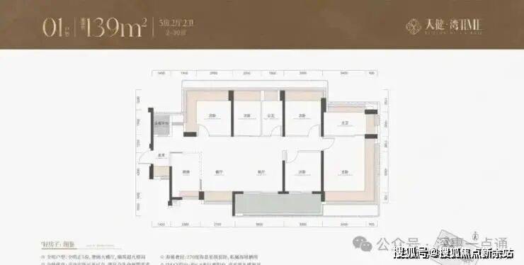 139㎡5房2卫:同样像瑧誉府143㎡横厅户型,多了一个房间。公卫旁的次卧面积稍小,可作为书房。主卧没有衣帽间,少了点豪奢感,但是整体上还是非常不错,很实用的5房。