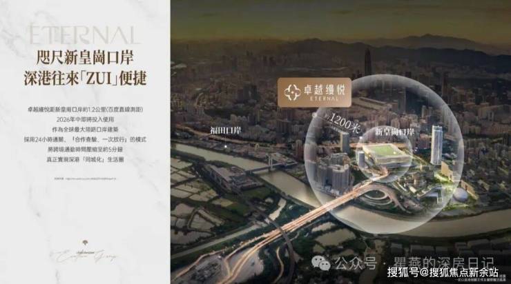 ◎新皇岗口岸:距项目约1.2公里,2026年投入使用,24小时通关