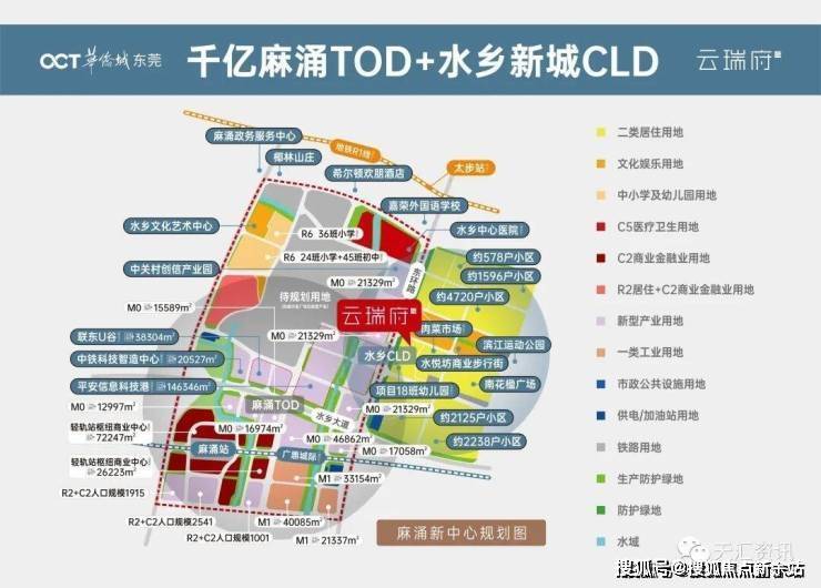 东莞水乡新城中心核心C位:麻涌新城中心,以TOD为核心区打造为集产业、生态居住、国际金融、休闲购物于一体的人居新城,与“松山湖”为邻。