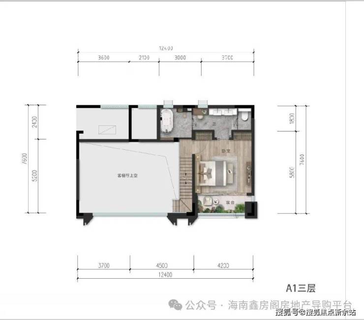 A2上叠建筑面积165㎡,3F2T4W,赠送约165平米(含地下车库65平米,4楼庭院面积83平米以及5楼阳台30平米,共4层(负一层车库+首层+4层+5层)客厅层高3.3米,卧室层高3.3米,地下车库挑高3.9米。(备注:数据仅供参考,具体以政府部门最终审定的图纸和销售合同为准。)