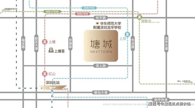 <交通>:2站直达深圳北站,3站直达宝安国际机场(深大城际开通后),6站轻松到达福田中心区。