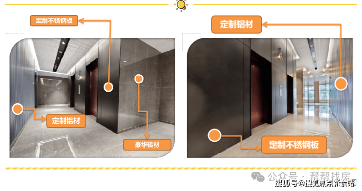 地库、首层入户大堂电梯厅装修所采用的不仅仅是豪华砖材,还有造价更高的定制铝材、定制不锈钢板。超30天的制作工期,带来的不仅仅是耐用,更多的是顶尖设计的艺术感。