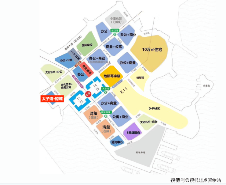 此外还规划有五星级酒店(2座)、国际学校(蛇口共7所)和目前深圳唯一的国际高端康养机构(招商力宝)。太子湾的整体打造将以结合山海资源为基础打造成以国际邮轮母港、高端商务平台、滨海休闲岸线、国际交通枢纽四大功能体系为主的大型城市综合体。
