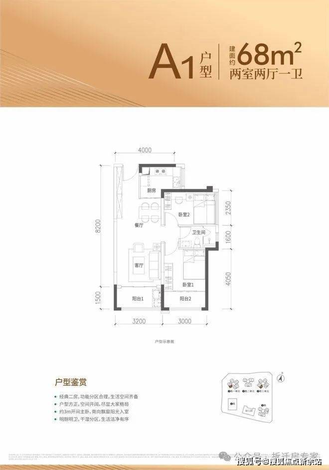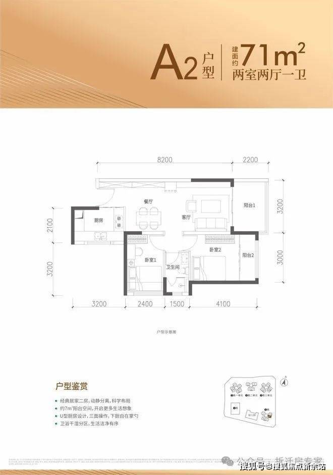 设计的是竖厅格局,客厅3.2米开间,进深8.2米,LDKB一体化设计,2个卧室分别做到了主卧12.5㎡/次卧9.12㎡(包含墙体飘窗),U型厨房,卫生间干湿分离,得房率约79%(不含赠送),东南朝向.
