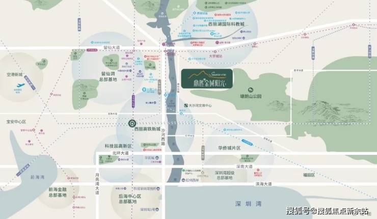 宅藏乾坤,乘山御水:项目南依塘朗山,北面西丽湖,西临大沙河,推窗观山,临街瞰河,不仅营造了豪宅级居住体验,更是南山绝佳风水之地。
