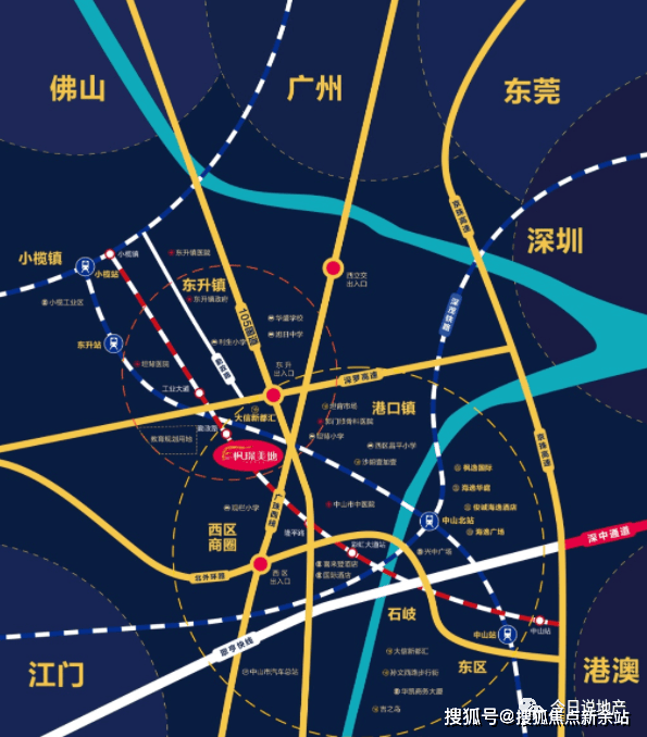 城轨:城轨东升站(约5km),乘搭3分钟直达广州地铁18号线(中山北站),20分钟抵达深圳前海自贸区以及广州站,(5分钟可达中山站,未来可1站到广州,2站到东莞,3站到深圳);
