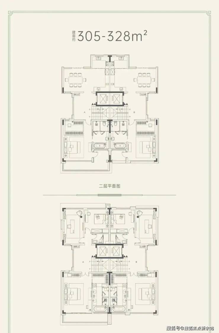 共有两个户型,建面约305-328平、建面约307-313平。一家人最好的相处模式,是既生活在一起,又互不干扰,每个人都有专属的私人空间。