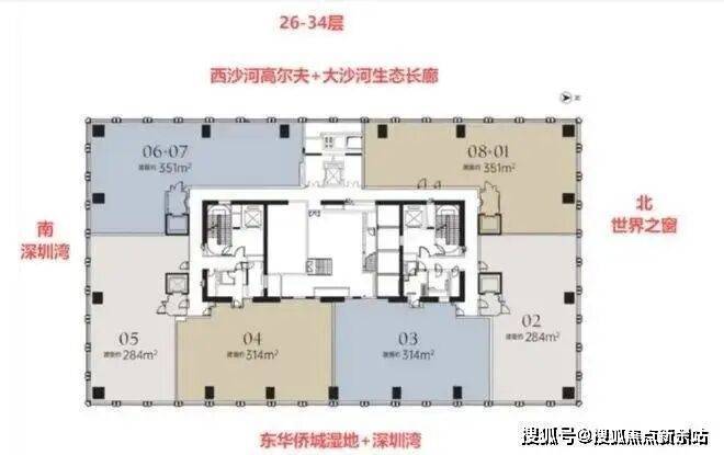 西向高尔夫:项目西侧有SIC、欧加大厦、中信红树湾等,很多户型的视野会有一定的遮挡。但高区单位景观受到影响较小,局部户型可俯瞰高尔夫稀缺景观资源。