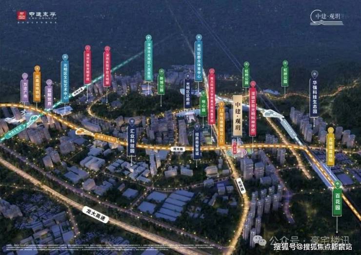 观玥名邸,位于光明区凤凰街道光侨路与观光路交汇处东南侧,地处凤凰城板块,根据光明十四五规划,凤凰城板块定位为光明科技总部基地,科创融合先锋商务区,提升光明城站枢纽地位,争取在2035年建成竞争力影响力卓越的世界一流科学城和高 质量高颜值的深圳北部中心。