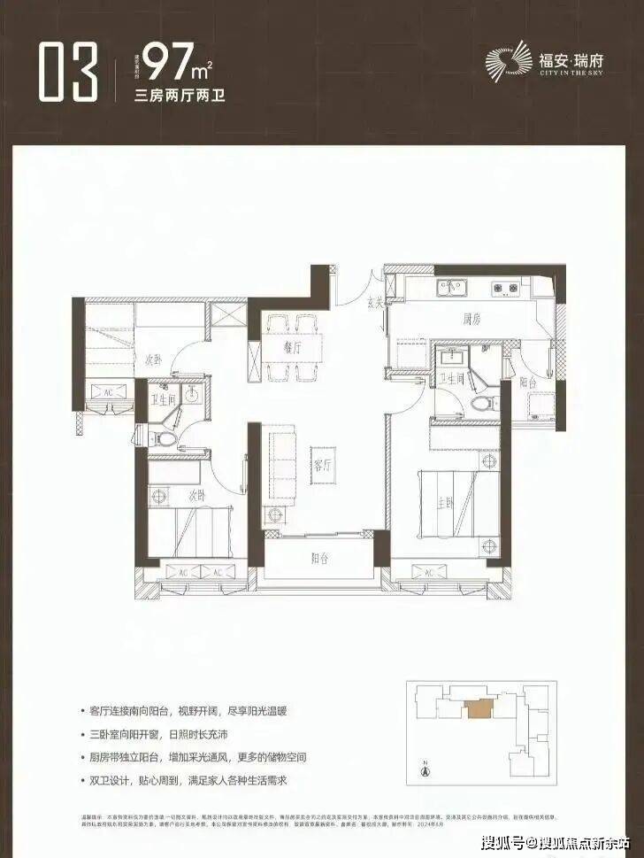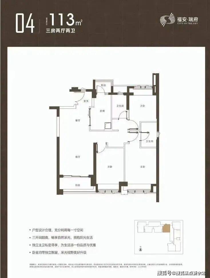 福安瑞府全套户型图已经公示,主推建面约97-98-112-126-143㎡的3-4房产品。户型均设计有双阳台、双套房。其中,97-98㎡3房两卫户型为双龙抱珠格局;113㎡户型为经典竖厅格局;126㎡的4房2卫设计有大景观阳台,不过户型整体欠方正;143㎡户型功能分区欠佳,不过三面采光较好。福安瑞府的户型以刚改为主,小区规模不大,且主要以回迁房为主,甚至宝保障房的套数也比商品房多。这类小区可能对纯居住的业主来说,居住氛围或有不足,或难以形成良好的邻里关系。