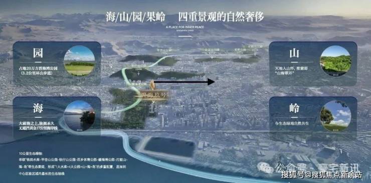 一线无遮挡公园海景,约20万m²碧海湾公园、约67万m²鲜氧果岭,自然度假风貌