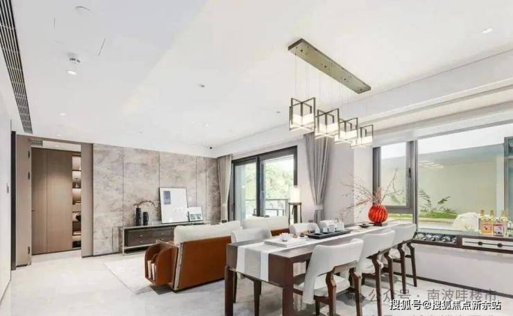 将新中式建筑精髓与当代格调完美融汇于大门之中;极致挑高尺度,尽显恢弘气度。