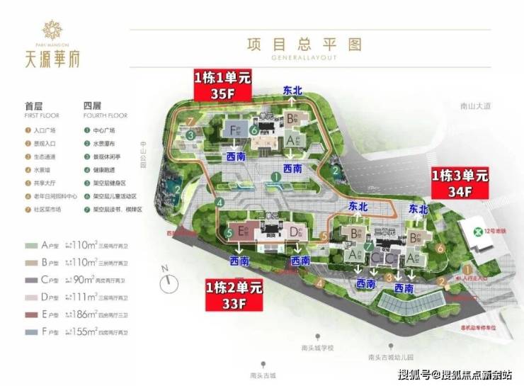 南山南头,中山公园旁,天源华府推售297套,位于1栋1/2/3单元,主打建面约90-186㎡公园宽景住宅。