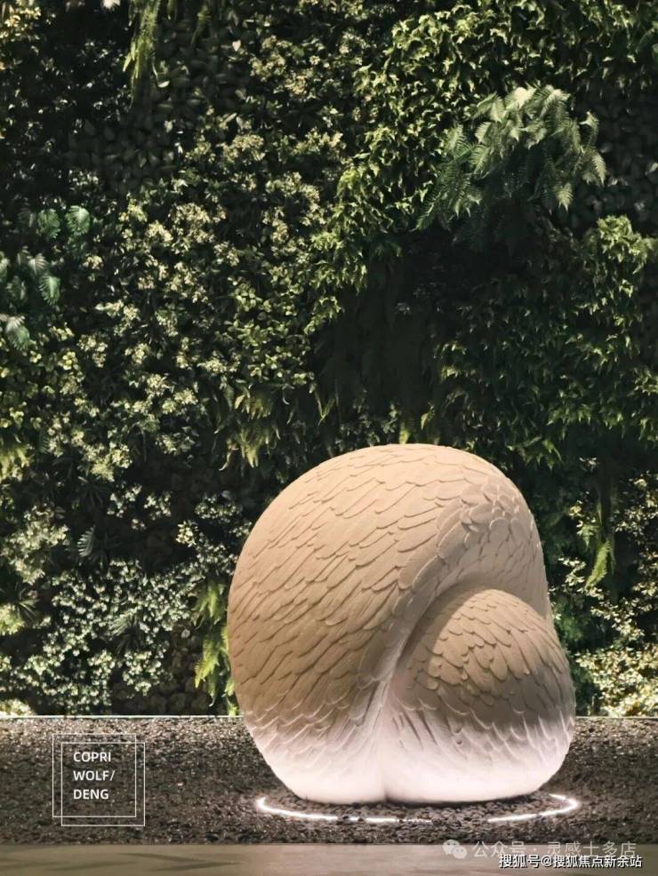 当然,门口简单,雕塑就不简单,这个名叫「卵鸟」的艺术品非常有意思,寓意「待孵化的鸟/蛋」,放在门口,即呼应了深圳作为鹏城的称号,也是呼应了酒店「百鸟归巢」的设计理念。