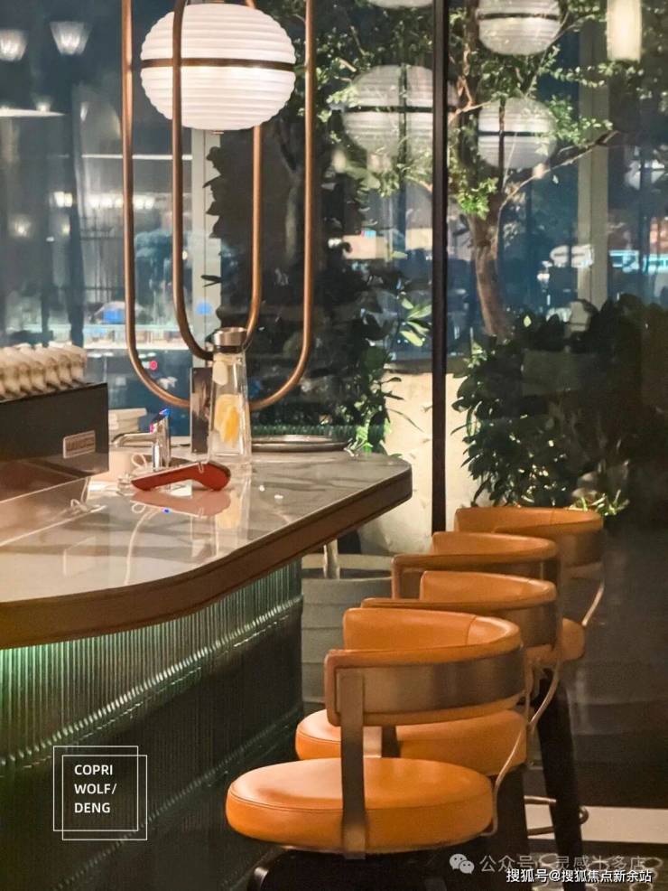 虽然通过了两头餐厅中间大堂吧的区块分离,同时中间大堂吧通过大的窗帘类似同心圆版的分割过道外围走道和中间的桌子,但是整体布局仍然稍显杂乱。