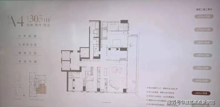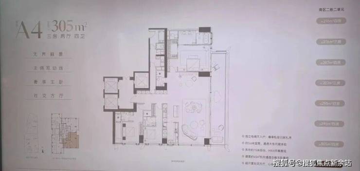 · 304㎡户型: 低区最大户型,空间布局奢华,功能分区明确,满足多代同堂的居住需求。