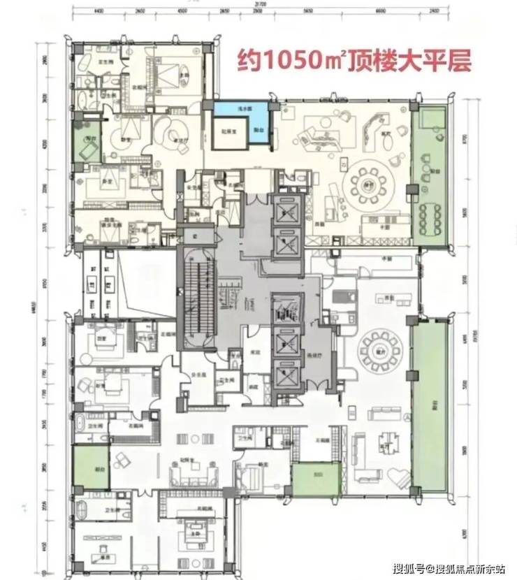 顶楼:约1050㎡整层大平层(仅3套)。