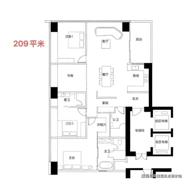 低区(5层起,150米内):约209-304㎡四房以上大户型。