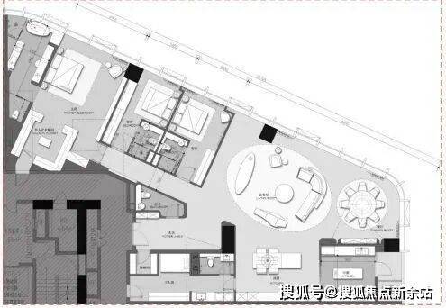 建筑面积约 439㎡,为 3 + 1 房 2 厅 2 厨 5 卫布局。该户型由 LSD 亲自操刀设计,拥有 270°城市与绿化景观,高区可看海景。采用全套房、双主卧设计,客餐厅开间超 10 米,方正主卧面积达 24㎡且为明卫设计,次卧带阳台,中西厨结合,还有多功能房,空间灵活多变。