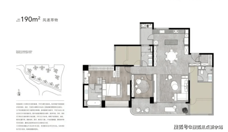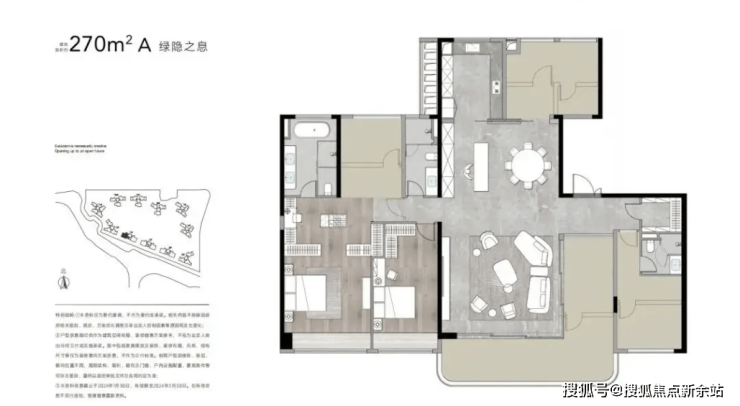270㎡的 4 室 3 厅 2 卫则是大户型选项,空间尺度开阔