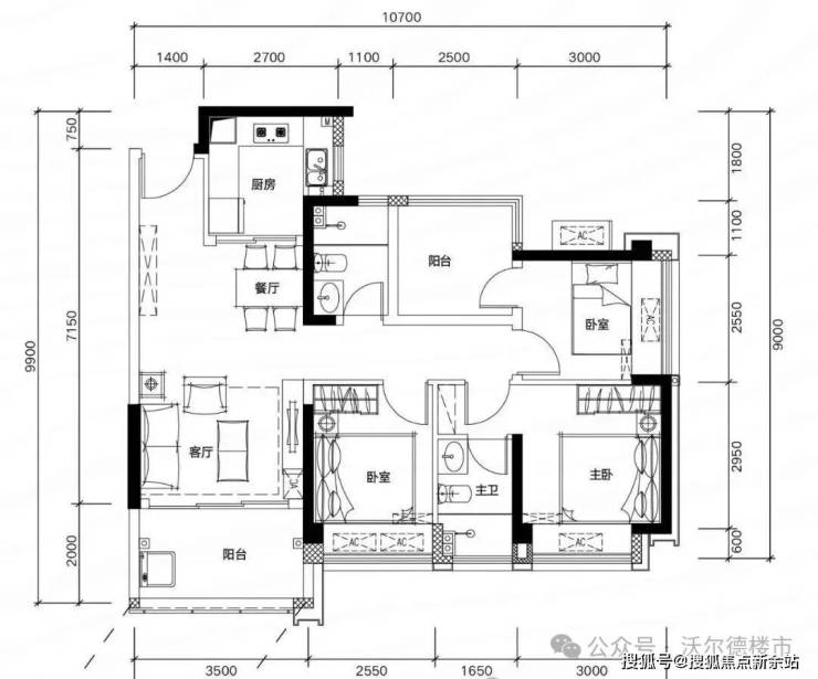✅ G03户型:约81㎡ 三房两厅两卫:
