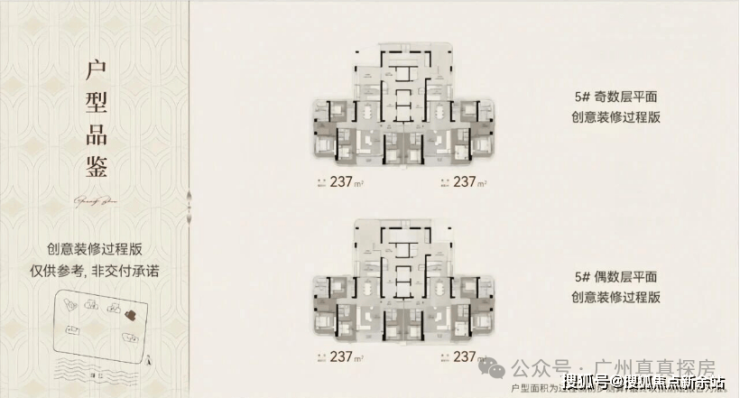 236㎡户型特点: 一层两户,3T2户独立梯厅互不扰; ·5.35*10.5m直厅宽敞大气; ·客厅、阳台、众数套房可望江望琶 洲总部及广州塔,景观优势; ·南北对流双阳台; ·工人梯独立动线,保障豪宅私密性; ·主卧270°景观转角飘窗; ·800mm飘窗可打;