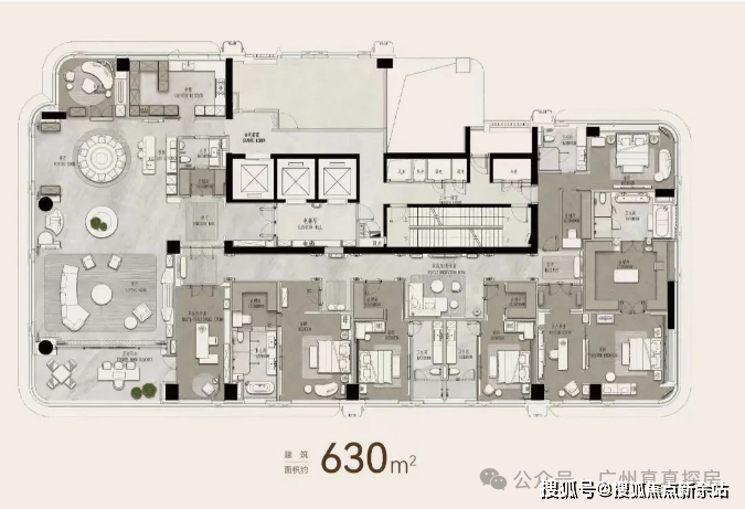 1#35层高,只有一个面积段,约630㎡户型