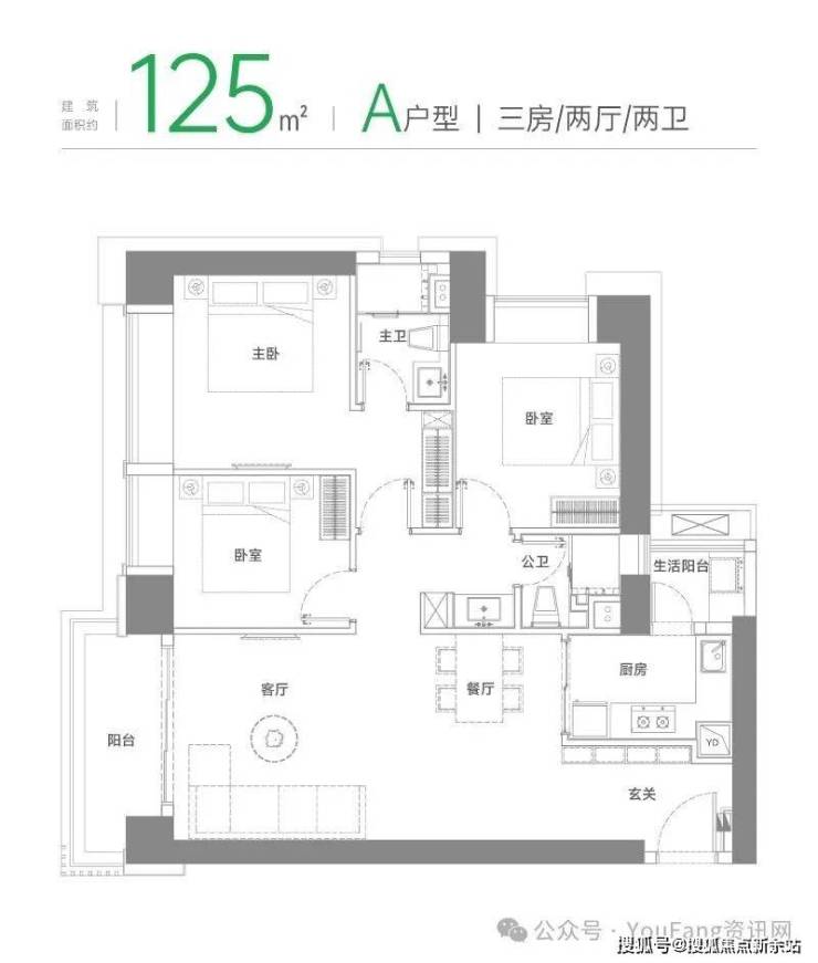 双阳台设计,厨房连通生活阳台,延展更多空间,随心收纳