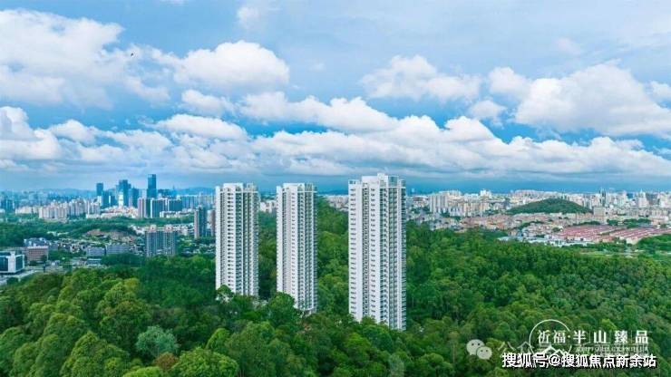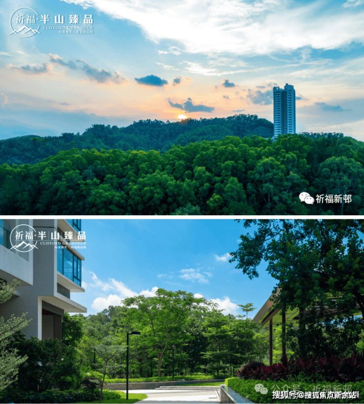 【祈福半山臻品】高台新园,半山之上,有十几米高差。半山水景园林直连原生林海,三栋现代俊朗的建筑巍然矗立,园林与林海无缝连接,实现真正的“零距离”。