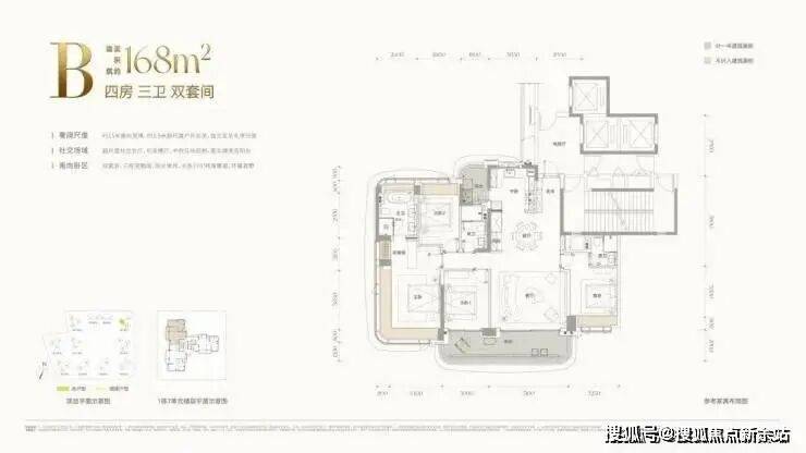 168㎡4房2卫,3梯3户,总价约2200万(单价约13万/㎡)