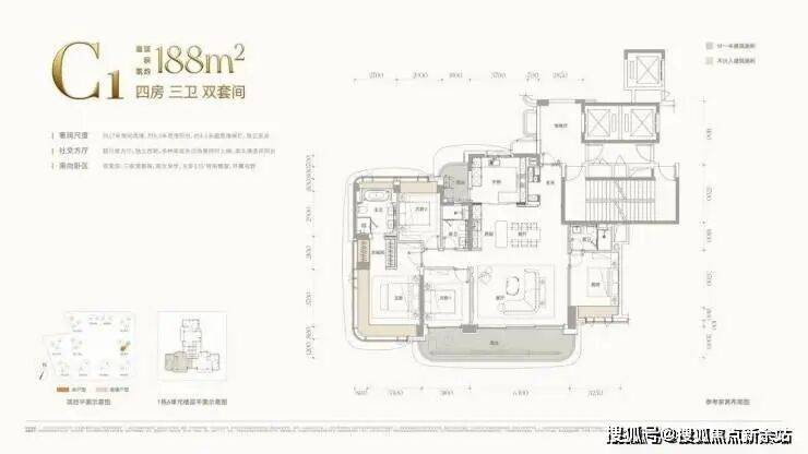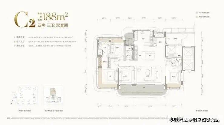 188㎡4房3卫,3梯3户,总价约2500万(单价约13.2万/㎡)
