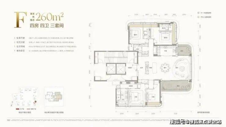 260㎡4房4卫,2梯2户,总价约4000万(单价约15.3万/㎡)